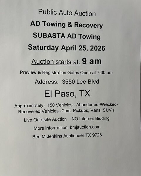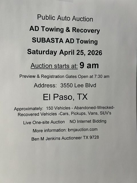 Gates Open for the Preview & Registration at 7:30 am Call AD Towing for any questions: 915-856-9200